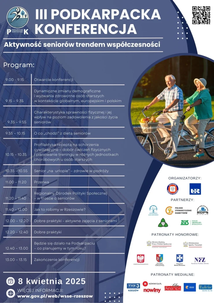 III Podkarpacka Konferencja „Aktywność seniorów trendem współczesności” będzie przestrzenią do rozmów o wyzwaniach i możliwościach, jakie niosą przemiany społeczno – demograficzne oraz do podkreślenia roli seniorów w budowaniu aktywnych i silnych wspólnot.
