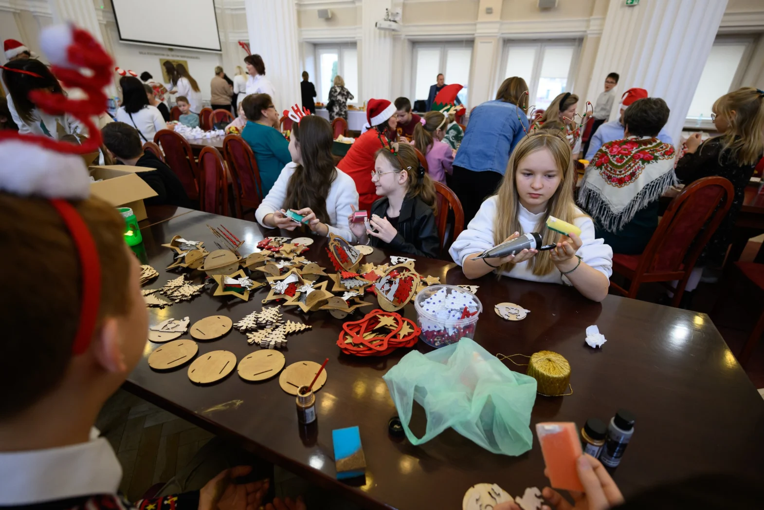 Dzieci i młodzież samodzielnie, pod okiem opiekunów – wychowawców, wykonały wspaniałe dekoracje: gwiazdki, śnieżynki, choinki, Mikołaje, bombki, łańcuchy, aniołki… Malowały, kleiły, wycinały, składały i wykańczały podczas warsztatów w PUW.