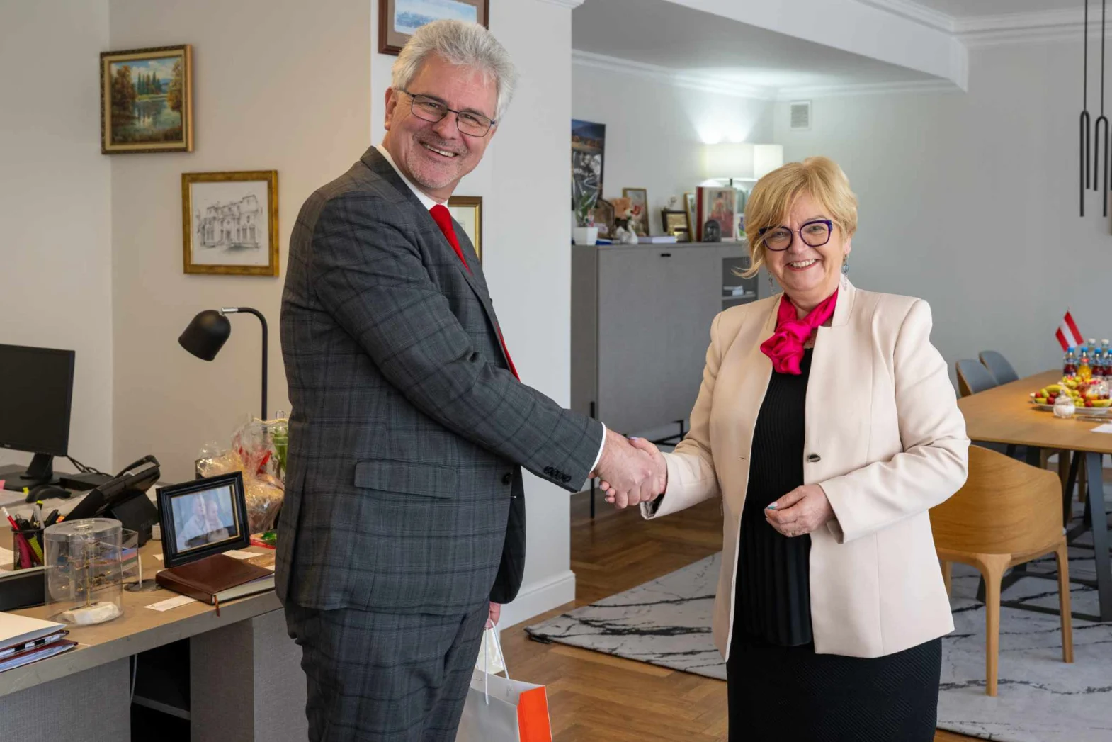 Rozmowa dotyczyła aktualnej sytuacji społeczno-gospodarczej Podkarpacia, płaszczyzny turystycznej i kulturalnej, a także kontaktów regionalnych m in. w kontekście współpracy województwa podkarpackiego z krajem związkowym Styria (Steiermark), leżącym w południowej Austrii.