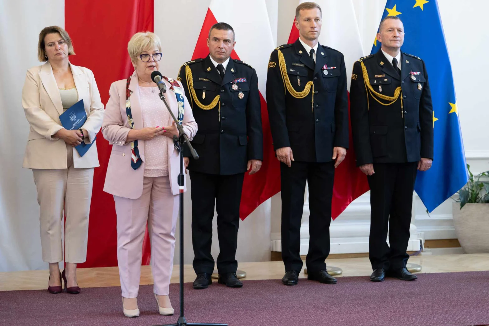 W związku z tym, że ostatni czas był bardzo trudny dla mieszkańców regionu, którzy musieli zmagać się z gwałtownymi zjawiskami pogodowymi, wojewoda podziękowała strażakom za pracę na terenach dotkniętych skutkami nawałnic.
