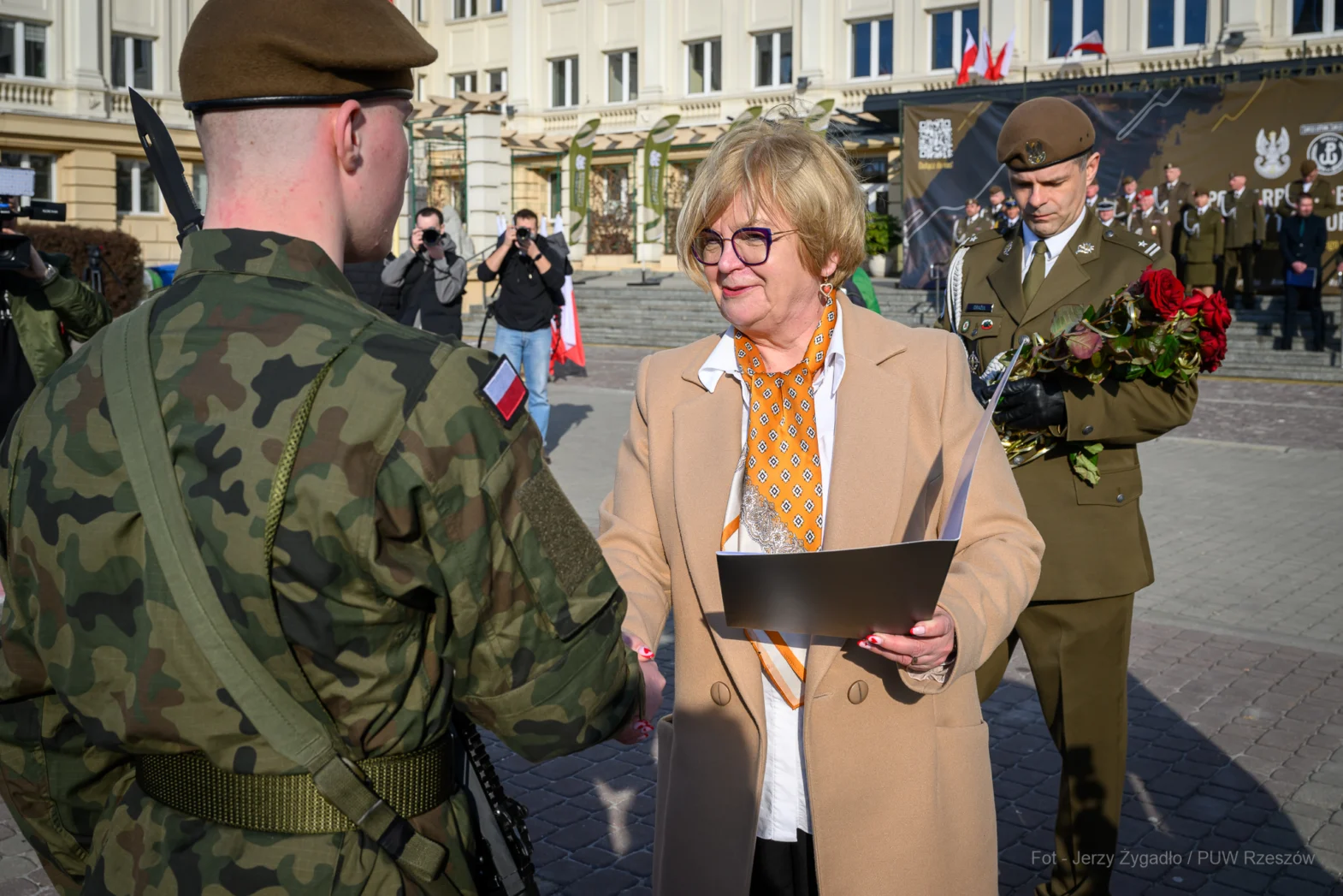 Jego życie w konspiracji, nieustanna walka o wolną Polskę i utworzenie Armii Krajowej pokazują, że prawdziwe przywództwo łączy determinację, odpowiedzialność, mądrość i troskę o innych – wskazywała Wojewoda. – Niech jego dziedzictwo i wartości, którymi kierował się w życiu, inspirują Was do sumiennego wypełniania obowiązków, rozwijania swoich umiejętności, a także budowania siły i odwagi. Niech mundur codziennie przypomina Wam o odpowiedzialności wobec Ojczyzny i lokalnych społeczności.