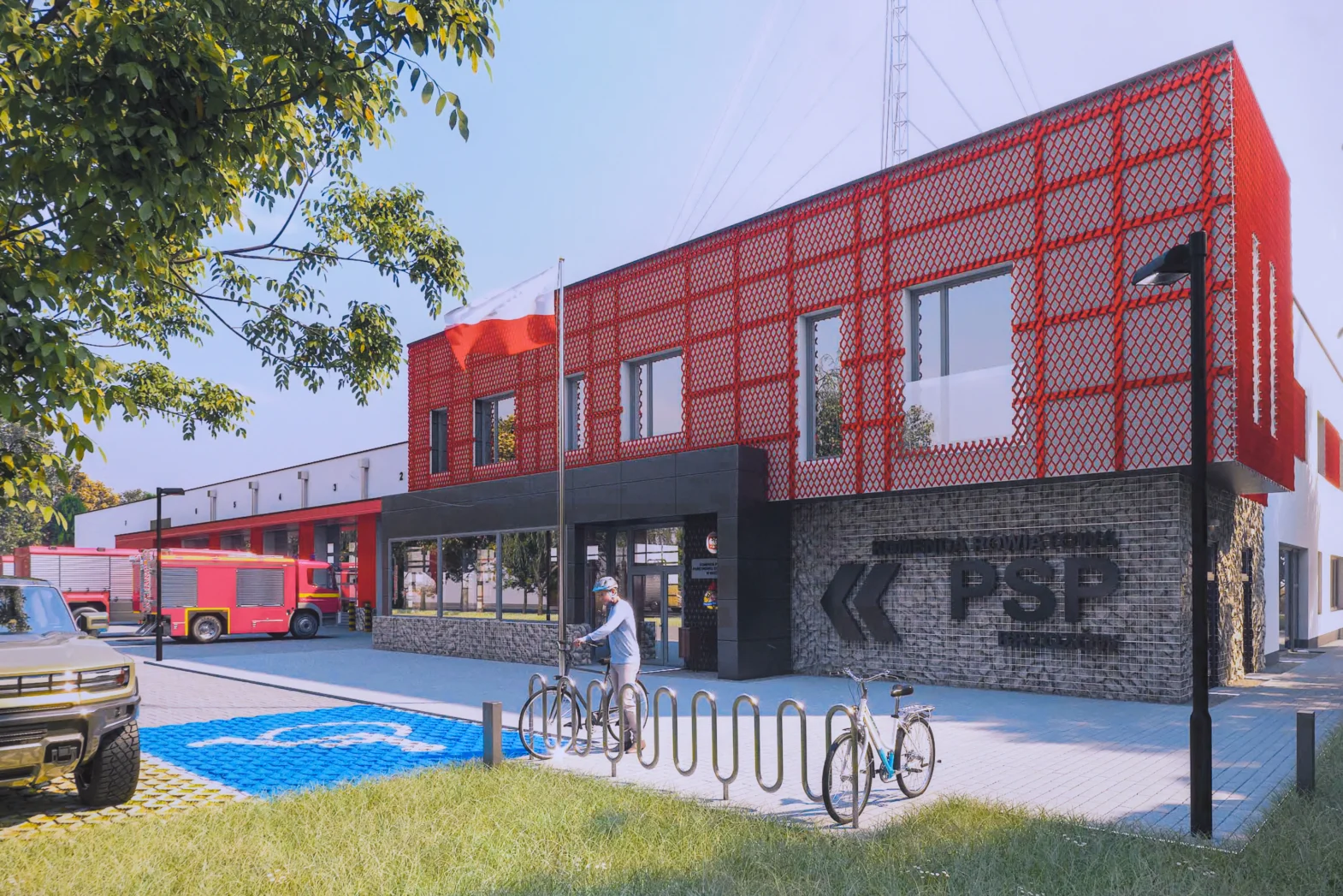 Nowy obiekt składał się będzie z dwóch części: garażowej z zapleczem magazynowo-technicznym oraz administracyjno-biurowo-socjalnej. Będzie wyposażony w place manewrowe i stanowiska postojowe dla pojazdów.