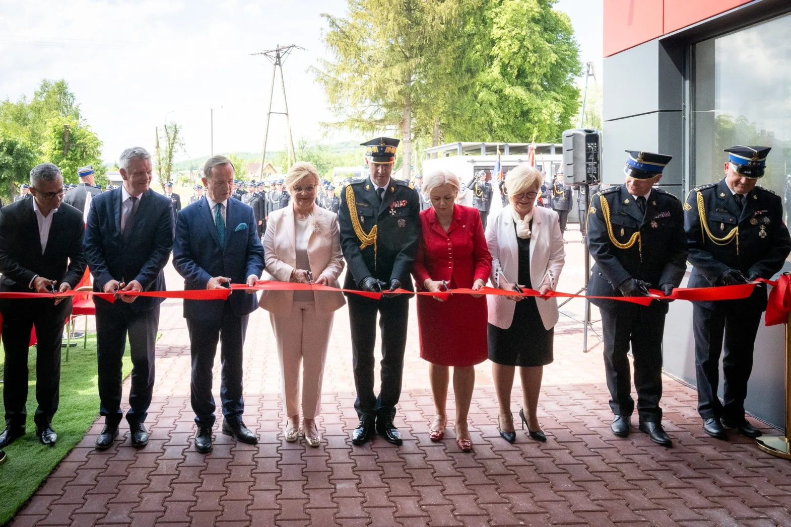 Następnie zaproszeni goście udali się do Jednostki Ratowniczo-Gaśniczej PSP. Tutaj odbyły się główne uroczystości, które rozpoczęto złożeniem meldunku komendantowi głównemu PSP nadbryg. dr. inż. Mariuszowi Feltynowskiemu.