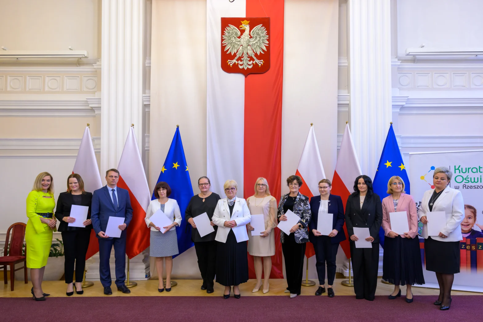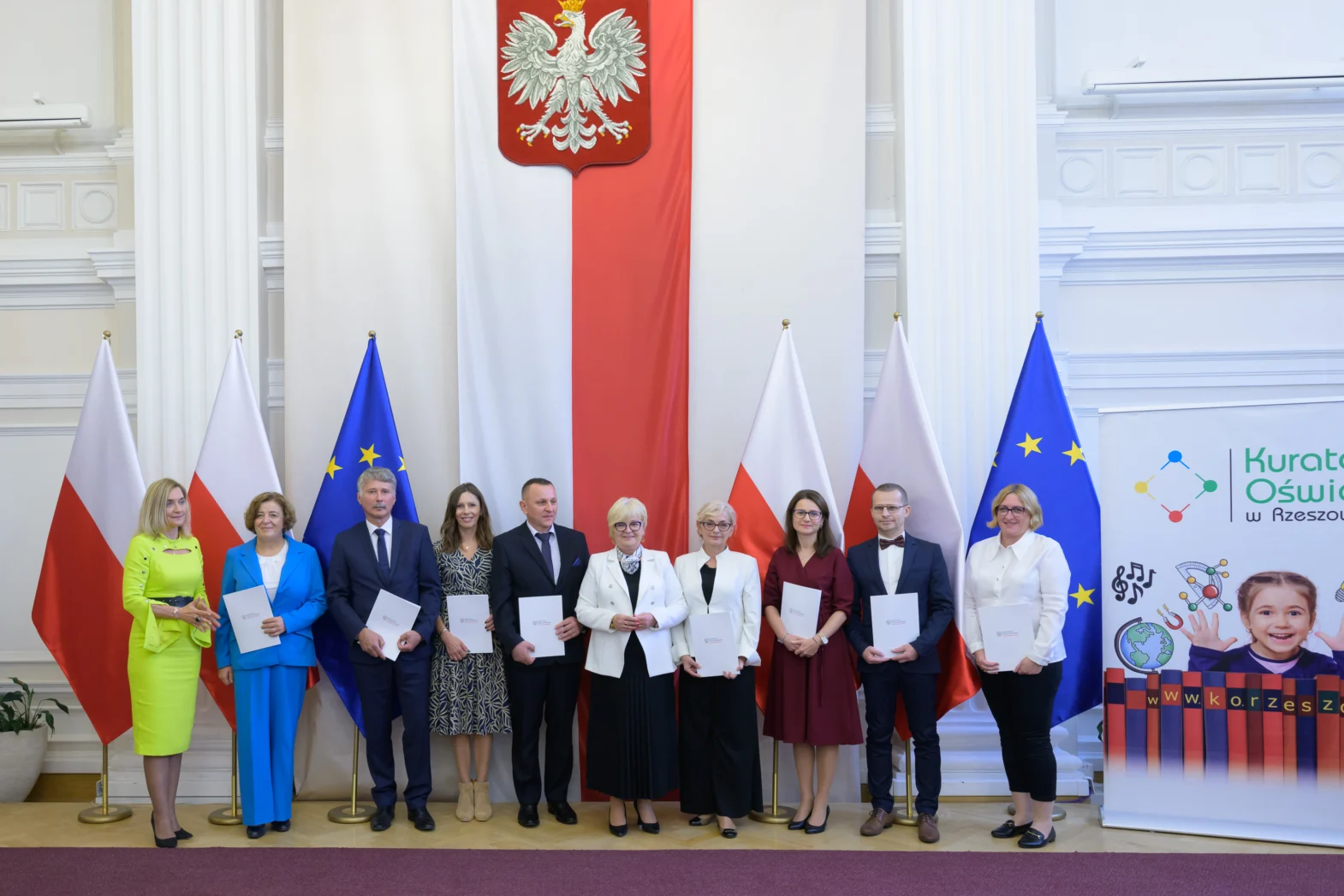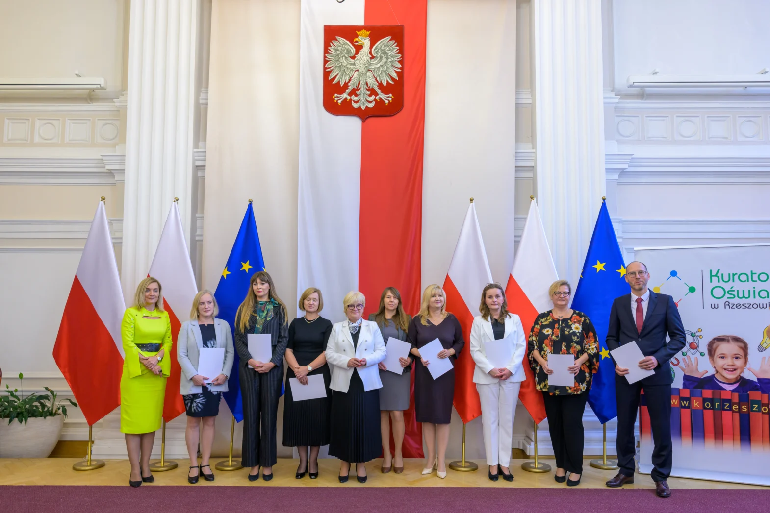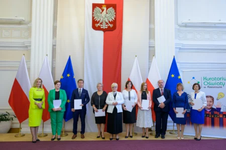 Dzisiaj w Podkarpackim Urzędzie Wojewódzkim w Rzeszowie odbyła się pierwsza cześć uroczystości z okazji Dnia Edukacji Narodowej, która była okazją do wręczenia nagród Ministra Edukacji Narodowej i Podkarpackiego Kuratora Oświaty.