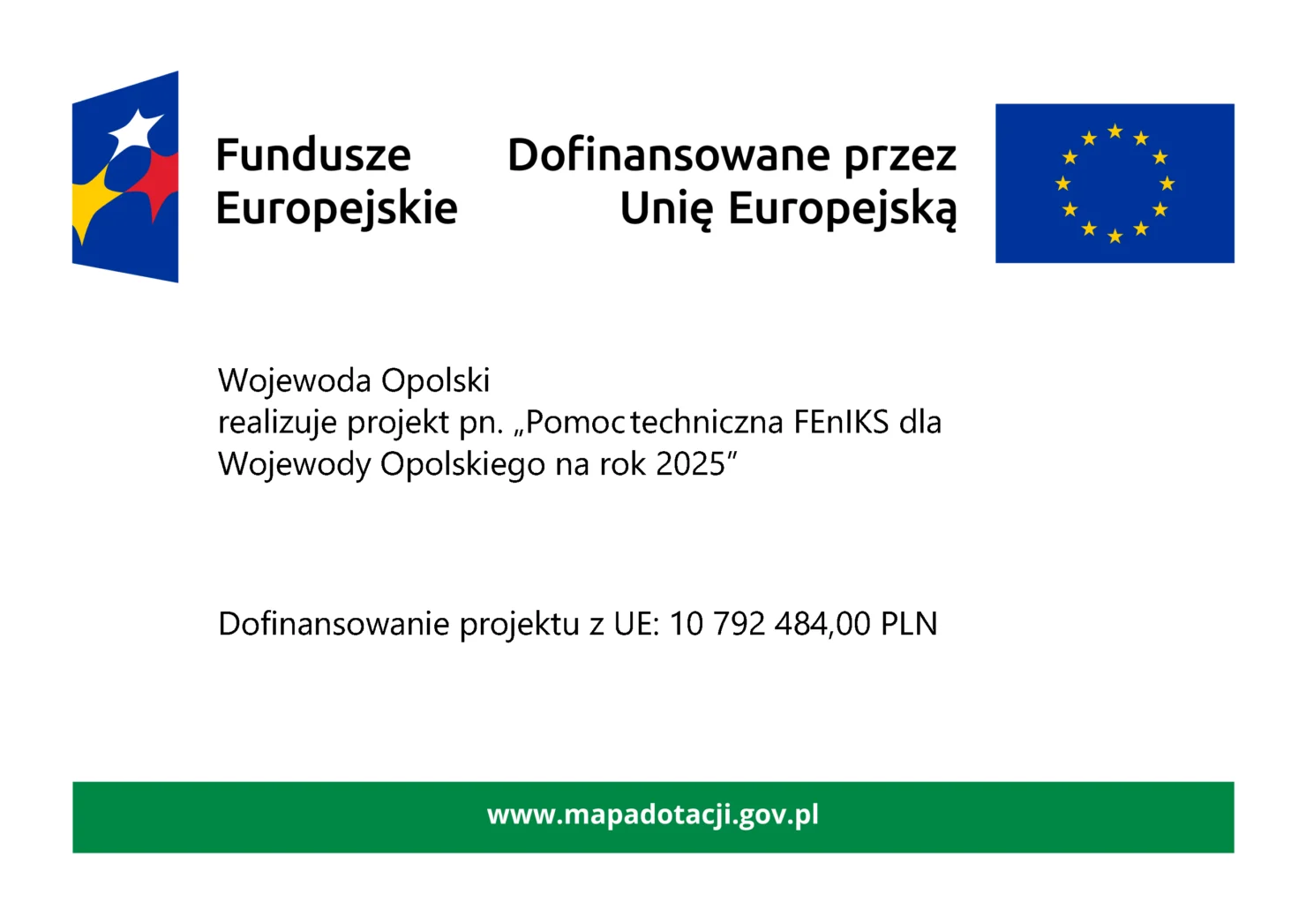 Wojewoda Opolski wraz z 15 Wojewodami realizuje projekt pn. „Pomoc techniczna FEnIKS dla Wojewody Opolskiego na rok 2025” w ramach VIII Priorytetu programu Fundusze Europejskie na Infrastrukturę, Klimat, Środowisko na lata 2021-2027.