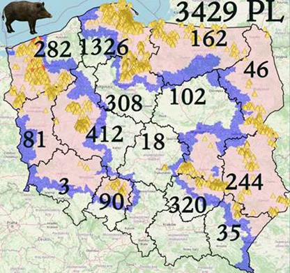 W br. chorobę potwierdzono u 95 dzików, w gminach: Horyniec Zdrój, Cieszanów, Stary Dzików, Lubaczów, Narol, Oleszyce, Wielkie Oczy.